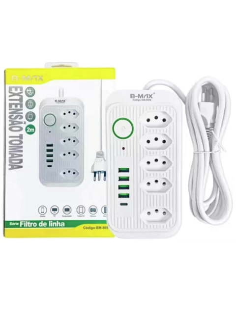 EXTENSÃO ELETRICA SL-7508 8 TOMADAS CABO 2 METROS